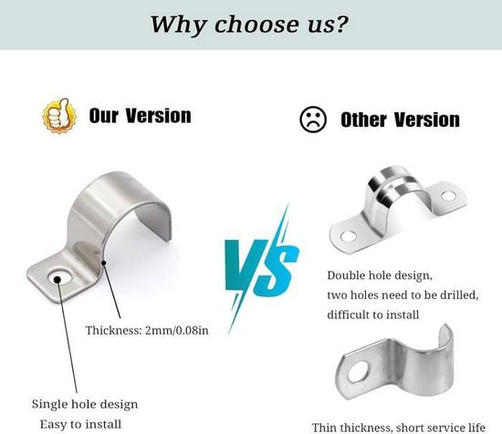 Attache Unilatérale Pour Grillage Rigide Kit 20 Mètres Grillage Rigide à Visser Ou Sceller - Kit Grillage Rigide En Acier Galvanisé Attaches Trou Unique Vis Pinces De Fixation Pour Clôture Clips De Fixation Pour Grillage Cloture Clips De Fil En Acier Inoxydable Avec Vis Colliers De Serrage Pour Cloture En Bois Vinyle Ou Metal 200 Pieces 86462852 Largement utilisé dans les tuyaux en acier inoxydable, les tuyaux en caoutchouc, les tuyaux en acier plastique, les tuyaux de gaz, les toilettes intérieures... Avis Important : En raison de sa petite taille, veuillez tenir ce produit hors de portée des enfants pour éviter qu'ils ne l'avalent. 【Installation Simple et Pratique】Chaque collier est muni d’un trou de montage permettant de le visser rapidement sur différentes surfaces planes. Il suffit de choisir une vis adaptée à la charge prévue et d’aligner le support pour fixer fermement câbles, tuyaux ou fils. Détails du Produit Nom du produit : Colliers de serrage unilatéraux en acier inoxydable Matériau : Acier inoxydable Poids : 57., 5 g Couleur : Argent Composants inclus : Non Piles incluses ? Non Piles requises : Non Description du Produit 1., Pour les bricoleurs professionnels, ces 30 colliers de serrage unilatéraux sont parfaits., 2., Pour la maison, le bureau ou l'industrie, ces colliers de serrage sont parfaits pour les chemins de câbles, les conduits et tous types de câbles. 【Utilisation Polyvalente】Ces fixations unilatérales conviennent à de nombreux usages : gestion de câbles électriques, fixation de tuyaux d’irrigation, organisation de conduits dans ateliers, entrepôts, cuisines ou espaces extérieurs. 【Conception Flexible et Gain d’Espace】Grâce à leur forme pratique, les colliers s’adaptent facilement aux coins ou aux zones étroites. Ils permettent d’optimiser l’espace disponible et facilitent l’organisation des câbles et tuyaux, tout en maintenant une fixation stable après installation. Elles assurent une fixation fiable des câbles et conduits, aussi bien en intérieur qu'en extérieur, dans des environnements variés. [Installation Simple et Pratique]Chaque collier est muni d'un trou de montage permettant de le visser rapidement sur différentes surfaces planes