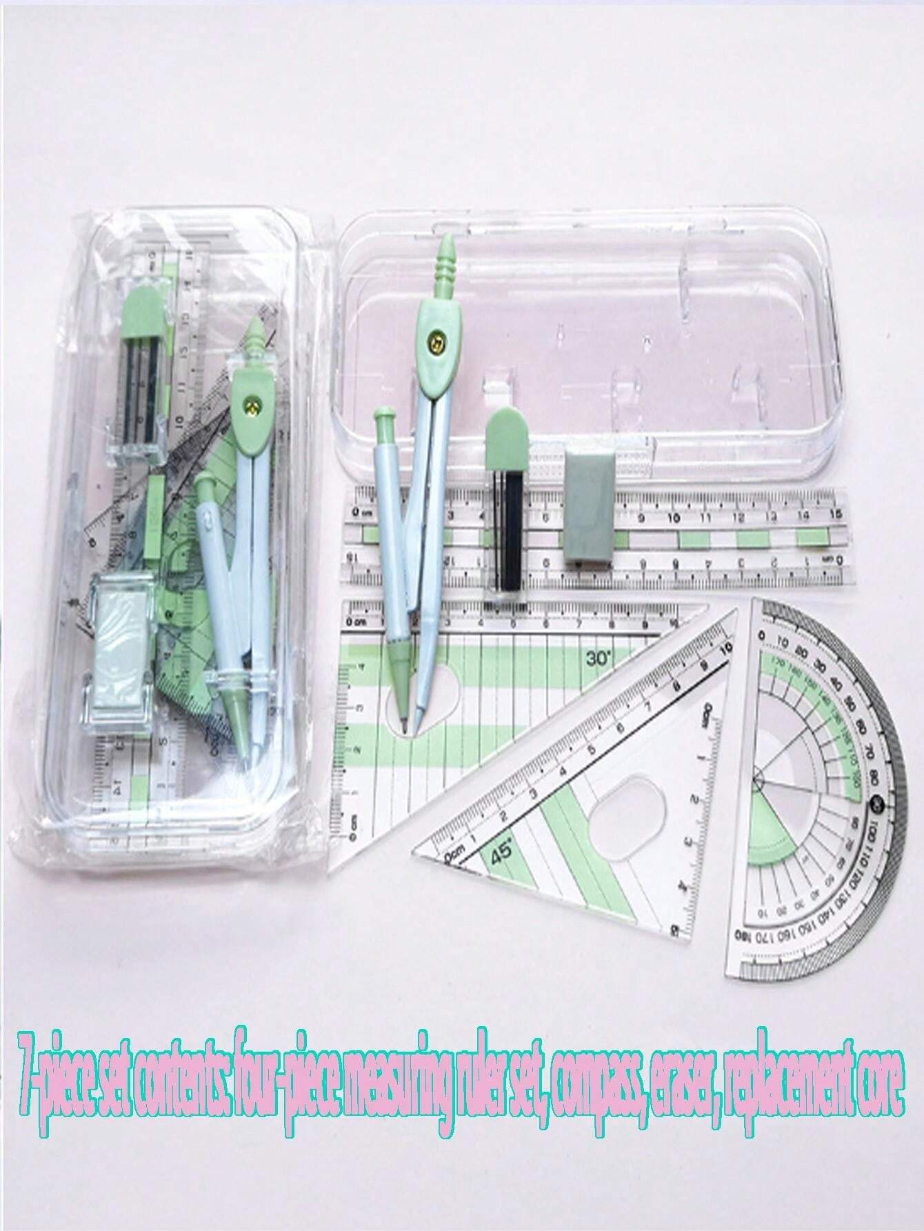 Kit de géométrie 8 pièces STAEDTLER Noris 550 - Compas bague et traçage Description du produit Idéal pour dessiner des cercles et mesurer des angles, bénéfique pour les étudiants, les enseignants, les ingénieurs, les designers, les artistes, etc. Nom du produit : ensemble de compas. Dimensions : 182 x 79 mm. Matériau : métal et plastique. Contenu du paquet Compas Réglage Rapide Compasso Professionale Kit Géométrie 8 Pièces - Compas, Règle, Rapporteur, Crayon, Gomme, Étui Transparent Cahier 24x32 Grand Carreaux 96 Pages Accessoires Dessin Technique étudiants Le Kit de géométrie 8 pièces est l’outil indispensable pour les cours de mathématiques, le dessin technique et la géométrie. Grâce à sa qualité durable et à son design ergonomique, ce coffret est idéal pour une utilisation quotidienne à l’école ou au bureau. Kit de géométrie 8 pièces STAEDTLER Noris 550 - Compas bague et traçage... Il inclut tous les instruments essentiels : compas à réglage rapide, rapporteur, équerres, règle, gomme, taille-crayon et mine de rechange – rangés dans une trousse pratique et résistante. Un cadeau idéal pour la rentrée ou pour tous ceux qui aiment le dessin géométrique !, 🎓📏 🎯 COMPAS PRÉCIS ET STABLE : Compas à réglage rapide avec molette micrométrique pour un tracé précis et fluide, idéal pour les élèves, étudiants et architectes. 🧮 ENSEMBLE COMPLET DE 8 PIÈCES : Comprend un compas, un rapporteur, deux équerres, une règle, une gomme, un taille-crayon et une mine de rechange – tout le nécessaire pour les cours de mathématiques.