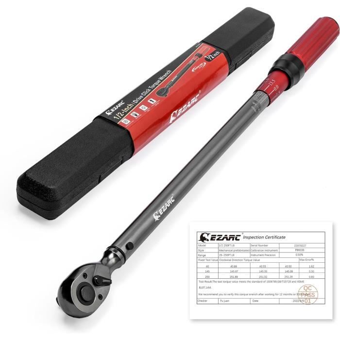 📌【FONCTIONS DÉTAILLÉES】--Clé dynamométrique pour vélo 20-220 NM dispose d'un mécanisme à cliquet à 72 dents qui permet une manipulation précise même dans les espaces restreints. 🧰【ÉTUI DE RANGEMENT ROBUSTE】--Clé dynamométrique 1/2 est livrée dans un coffret en plastique solide qui permet de ranger l'outil en toute sécurité et de le protéger des chocs et des rayures. Ces propriétés durables garantissent une stabilité de couple élevée même dans des conditions extrêmes. 🚘【COMPATIBLE AVEC DIFFÉRENTS TYPES DE VÉHICULES】--Clé dynamométrique est le choix parfait pour les travaux d'entretien et de réparation sur les voitures, motos, vélos et machines. Si vous avez des questions ou des problèmes, contactez-nous – nous vous offrons une solution satisfaisante dans les 24 heures ❗【REMARQUES IMPORTANTES】--Pour prolonger la durée de vie de la clé dynamométrique de 1/2 et assurer un fonctionnement sûr, assurez-vous que la valeur de couple est réinitialisée à zéro avant le stockage. 🧭【20-220 NM ET RÉGLAGE FIN DE 1 NM】--Clé dynamométrique 1/2 offre une plage de réglage flexible de 20 à 220 NM et peut être ajustée par incréments de 1 NM. Que ce soit pour des réparations quotidiennes ou des utilisations de longue date, cette clé torque garantit des performances fiables et prolonge considérablement la durée de vie de l'outil, ce qui le rend indispensable dans chaque atelier Expert - Clé Dynamométrique 1/2 - 20 À 100Nm Nous offrons une garantie de 12 mois sur tous les produits. Ainsi, votre outil reste toujours en sécurité et bien rangé, que ce soit dans l'atelier ou en déplacement 🛠【MATÉRIAUX MÉTALLIQUES DE QUALITÉ SUPÉRIEURE】--HARDZTOOL 1/2 clé dynamométrique est fabriquée en acier au chrome vanadium de qualité supérieure et offre une résistance exceptionnelle à la rouille et à l'abrasion. Clé Dynamométrique 1/2'' 20-100 Nm - Facom Ce réglage précis garantit que votre clé dynamométrique de vélo convient à toutes les tâches, de l'entretien léger aux réparations lourdes. Les valeurs d'échelle clairement gravées sont faciles à lire même dans des conditions de faible luminosité. Cela aide à éviter un serrage excessif ou un serrage incorrect et garantit une commande automatique précise de la clé dynamométrique Avec une plage de 20 à 220 NM, la clé Torque wrench est adaptée à différents besoins et projets de couple de vélo. Que vous soyez un professionnel ou un bricoleur, cette clé dynamométrique de 1/2 est facile à utiliser et permet d'économiser du temps et des efforts Jeu De 15 Clés Dynamométriques 1-4 2-24 Nm Clé Dynamométrique De Vélo Clé Dynamométrique Clé... Cle Dynamometrique Ks Tools Clé Dynamométrique 1/2", Cles Dynamometrique 20-220 Nm, ±3 Clé Pour Serrage Pneus 🥇【FACILE À UTILISER】--Clé dynamométrique est très simple : la valeur de couple peut être réglée et fixée rapidement en tournant la poignée. Cela protège les ressorts et garantit un réglage précis à chaque utilisation. 🔊【PRÉCISION ET AVERTISSEMENT ACOUSTIQUE】--Précision de ±3 %, la clé dynamométrique de 20 à 220 nm offre une mesure exacte de couple pour chaque vis et écrou.