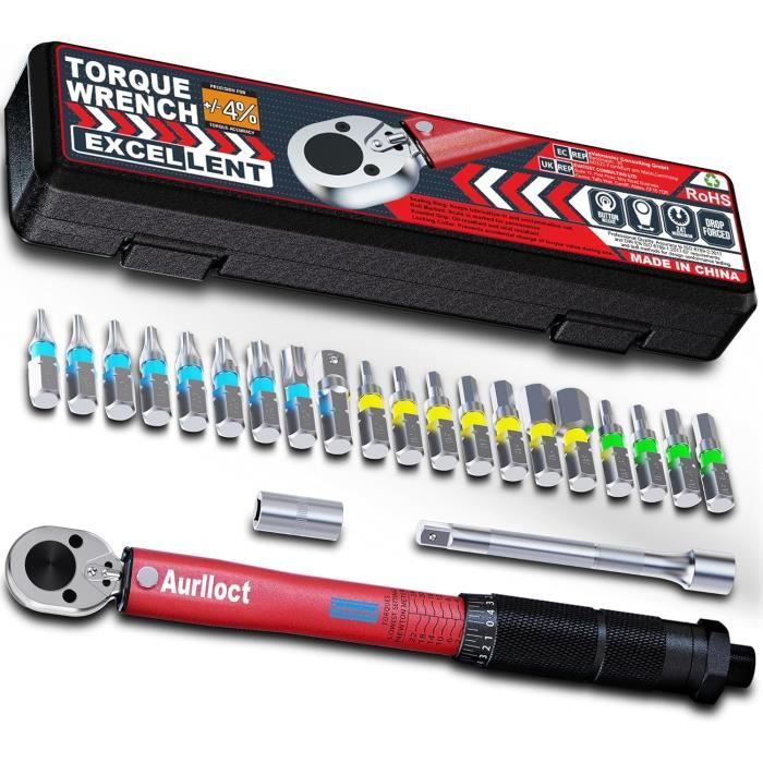 Kit Embouts Allen Torx Clé Dynamométrique 1/4" 2-24 Nm - Clés Dynamométriques Et Clé Dynamométrique 1/4 2-24 Nm Clé dynamométrique | 1/4 | 1 - 6 Nm Découvrez notre vaste gamme de 15 pièces Ensemble de clé dynamométrique 1/4 2-24Nm Outil de clé Allen Ensemble d'outils de clé à douille Ensemble de clé... Clé Allen 1/4 - Couple de serrage de 2 à 24 Nm : Avec un couple de serrage de 2 à 24 Nm, cette clé permet de réaliser un large éventail de tâches, des plus simples aux plus complexes. Têtes hexagonales à tête plate : T25, T30 (2 pièces), cruciformes PH1, PH2 (2 pièces). Clé Allen double sens pour vélo - Clé à douille : Cette clé est utilisable dans les deux sens, ce qui la rend plus facile à utiliser et plus efficace. Coffret de 15 clés dynamométriques : Ce coffret comprend 15 clés dynamométriques de tailles différentes, ce qui le rend polyvalent pour répondre à divers besoins de réparation de vélos. Grâce à sa conception entièrement réglable et à ses têtes à cliquet, l'utilisateur peut s'assurer que la tension et la charge sont correctement réglées sur les écrous et les boulons Indispensable pour les travaux automobiles : Dans les véhicules modernes, chaque boulon possède un couple de serrage spécifique, ce qui fait de la clé à cliquet réversible un outil essentiel pour garantir un serrage correct et prévenir les dommages et les accidents Livré dans une petite boîte en plastique pour emporter tous les accessoires Ensemble d'outils à main 38in 19-110NM Clé Dynamométrique Haute...