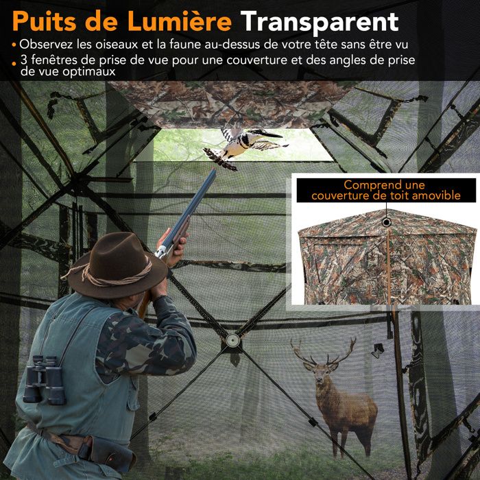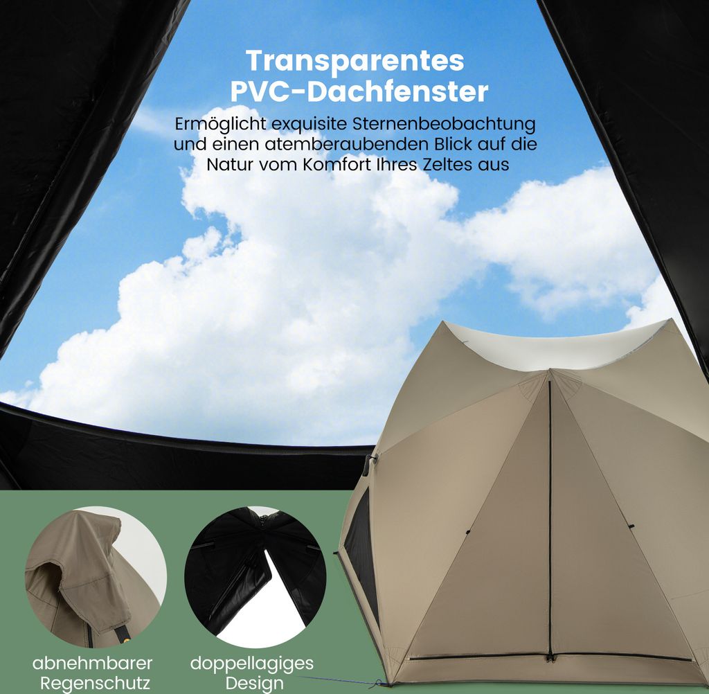 Sa portabilité et sa facilité d'installation en font un choix fiable pour les aventures spontanées et les rassemblements planifiés. Tente Panoramique 630° Résistante Intempéries Naturalpowev Tente à Bulles Pop-up, Moustiquaire Pour 8 à 12 Personnes, Résistante Aux Intempéries Et Au Froid, Pour Le Camping, Le Jardin, L'arrière-Cour, 350 X 350 X 205 Cm Tente Bulle Panoramique Camping Description : Notre tente bulle spacieuse de 265 x 265 CM à huit faces est conçue pour les réunions de famille ou entre amis, pouvant accueillir confortablement 5 à 6 personnes. Vue claire à 360°]La tente bulle est fabriquée en PVC de haute qualité, qui est non seulement résistant aux déchirures et imperméable pour un usage extérieur à long terme. De plus, le design transparente offre une vue panoramique à 540°, permettant de profiter de la beauté de la nature Le PVC est en plus résistant au froid, conserve la chaleur, est étanche et résistant à la déchirure pour une utilisation à long terme. 【Structure stable et fiable】Soutenue par des armatures en fibre de verre haute résistance, cette tente pop-up assure une excellente solidité et résilience contre la déformation. COSTWAY Tente de Chasse Portable 2 à 3 Personnes Vue Dégagée à 270... 【Clarté et confort exceptionnels】Fabriquée en plastique PVC haute transparence, la tente transparente instantanée offre une vue panoramique à 630° tout en laissant entrer la lumière naturelle afin que vous puissiez profiter de la beauté de votre environnement sans interruption. Cet abri polyvalent est parfait pour diverses activités de plein air, grâce à son déploiement rapide, sa construction robuste, ses deux grandes entrées zippées et ses deux fenêtres latérales zippées. 【Intérieur spacieux】La tente bulle mesure 265 x 265 x 190 cm et peut accueillir confortablement 5 à 6 personnes, parfait pour se rassembler en famille ou entre amis. Tente transparente COSTWAY, tente pop-up pour 6 à 10 Cette tente un refuge idéal pour admirer les paysages en hiver tout en restant à l'abri du froid. Il possède deux portes roulantes ainsi que deux fenêtres, assurant une bonne ventilation et un environnement aéré.