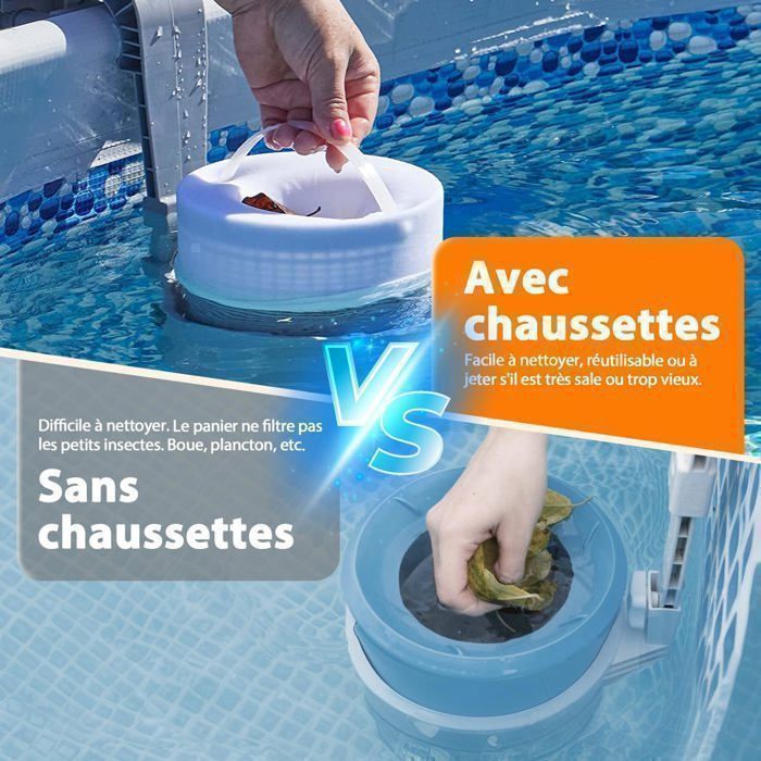 Lot de 20 chaussettes de skimmer pour piscine - Filtre de skimmer - En Pour tous les paniers (jusqu'au diamètre 24 cm). Boite de 12 préfiltres. Fini le nettoyage des paniers de skimmers; Evacuation hygiénique des déchets emballés... Chaussettes Filtration Pompe Piscine Chaussette Filtration Réutilisable YYTECH - Lot De 20, Nylon Réutilisable, Filtration Feuilles Et Débris Piscine Chaussette Piscine Chaussettes Skimmer Paquet de 20 Chaussettes Skimmer Piscine Tencoz Fabriquées en nylon épais et ultra-fin, les chaussettes de skimmer piscine Tencoz sont durables et réutilisables. turbine de pompe et joint d'arbre de votre piscine. Paquet de 20 Chaussettes Skimmer Piscine Tencoz. Fabriquées en nylon épais et ultra-fin, les chaussettes de skimmer piscine Tencoz sont durables et... Avec le maillage ultra-fin pour capturer toutes les petites particules de débris, telles que les feuilles, l'herbe, les cheveux, l'écume inanimée, l'huile, les aiguilles de pin, le pollen, etc. Conseils pour les chaussettes de skimmer piscine: 1., Remplacez-les par les nouvelles chaussette skimmer de piscine du panier d'écumeur toutes les 4 à 8 semaines., 2., Lorsqu'elle est sale, nettoyez la chaussette du filtre de piscine avec de l'eau ou jetez-la., 3., Ne pas utiliser pendant la dissolution d'une tablette de chlore dans votre panier, car cela érodera les chaussettes de l'écumoire., 4., Le panier d'écumeur n'est pas inclus, l'article comprend seulement 20 chaussettes de piscine. Travaillez bien Les chaussettes d'écumeur de piscine agissent comme un filet pour attirer et piéger les feuilles, l'herbe, les cheveux, l'écume, l'huile, etc. Haute élasticité, pas de déformation Le tissu est de haute qualité et s'étire très facilement pour s'adapter au panier.