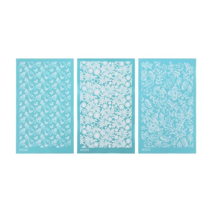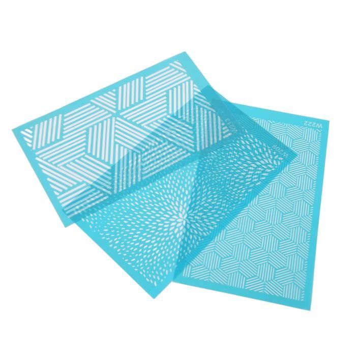 Outil En Argile Polymère 3 Pièces, Pochoirs Pour Sérigraphie Convient à une variété de surfaces, y compris, mais sans s'y limiter, l'argile molle, le bois, le tissu, les chemises, le papier et plus encore Kit Création Bijoux 3 Pièces Pochoirs De Sérigraphie En Argile Polymère, Kit De Sérigraphie Réutilisable DIY, Modèles De Plaque D'Impression De Grattoirs De Texture DIY Pour Boucles D'Oreilles En Argile De Bijoux(#4 Argile Autodurcissante Spécifications :Matériel : Maille de soieRemarques :1., En raison de la mesure manuelle, il existe une légère erreur de taille., 2., Les couleurs peuvent varier légèrement en raison des différents écrans. Placez simplement ce modèle sur l'argile faite à la main, utilisez une spatule pour recouvrir uniformément l'acrylique à base d'eau sur le motif creux, puis utilisez un coupe-argile pour découper le motif souhaité. Matériau de qualité supérieure : fabriqué en maille de soie de haute qualité, le kit de sérigraphie est de structure stable, difficile à casser ou à... Facile à utiliser : ces sérigraphies sont faciles à transférer et à utiliser avec des acryliques à base d'eau. REMARQUE : utilisez uniquement de la peinture acrylique à haute teneur en pigments, car elle ne sera ni trop épaisse ni coulante. Contenu de l'emballage : vous recevrez 3 pochoirs de sérigraphie. N'utilisez pas de peintures à base d'huile sur les pochoirs sérigraphiés.