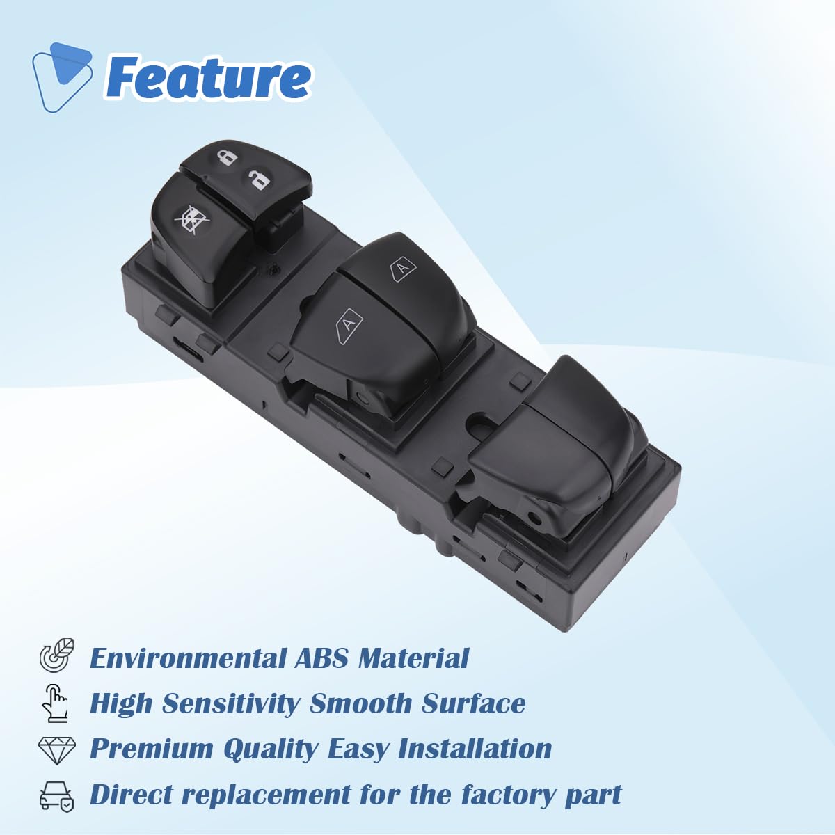 Comment utiliser : Facile à installer : Éteignez l'alimentation avant l'installation. Interrupteur Commande Vitre Noir Interrupteur De Lève-vitre électrique Côté Conducteur, Compatible Commande Vitre Nissan Murano Pathfinder Compatible avec:pour Nissan Altima 2., 5L CVT 2013-18pour Nissan Altima 3., 5L V6 CVT 2013-2018pour Nissan Murano 3., 5L V6 CVT 2015-2024pour Nissan Murano Hybrid Platinum 2016 2017pour Nissan Murano Hybrid SL 2016pour Nissan Pathfinder 3., 5L V6 2013-2020pour Nissan Pathfinder Hybrid Platinum SV 2014-2017pour Nissan Pathfinder Hybrid SL 2014 2015Numéro OE :254113TA3APoints forts produit:Fabriqué en plastique et en métal, durable pour votre voiture. The compatibility is spot-on for 2013-2018 Altima, 2013-2020 Pathfinder, and 2015-2022 Murano models, replacing part numbers 254113TA3A, DWS1641, and 1S12965 Il s'agit produit non-OEM, accessoire uniquement ! Compatible avec : pour Nissan Altima 2., 5L CVT 2013-2018, pour Nissan Altima 3., 5L V6 CVT 2013-2018, pour Nissan Murano 3., 5L V6 CVT 2015-2024, pour Nissan Murano Hybrid Platinum 2016 2017, pour Nissan Murano Hybrid SL 2016, pour Nissan Pathfinder 3., 5L V6 2013-2020, pour Nissan Pathfinder Hybrid Platinum SV 2014-2017, pour Nissan Pathfinder Hybrid SL 2014 2015 Description de 25411-3TA3A 254113TA3A Interrupteur de vitre électrique simple côté passager Compatibilité : pour Nissan Altima 2013-2020. Couleur : noir. Matériau : plastique. Contenu de l'emballage : 1 interrupteur de fenêtre. Contenu de l'emballage ci-dessus uniquement ; les autres produits ne sont pas inclus. Remarque : la réflexion de la lumière et les différents affichages... L'apparence produit n'est pas endommagée après chute. Après 50 000 tests, produit ne présente pas corrosion ni rouille, performance interrupteur est bonne, boutons sont lisses et ne collent pas. Informations sur le produit : L'interrupteur de vitre électrique est utilisé pour monter ou descendre les vitres de votre véhicule. Interrupteur Fenêtre pour Nissan pour Sentra pour Pathfinder pour Murano Z50 X-Trail Interrupteur Commande Lève-vitre Électrique Principal Avant Gauche 25401-9W100 lève-vitre électrique Il n'y a pas décoloration évidente au contact eau, touches n'affectent pas utilisation et symboles identification ne sont pas endommagés. Fonction du bouton : Commande de vitre