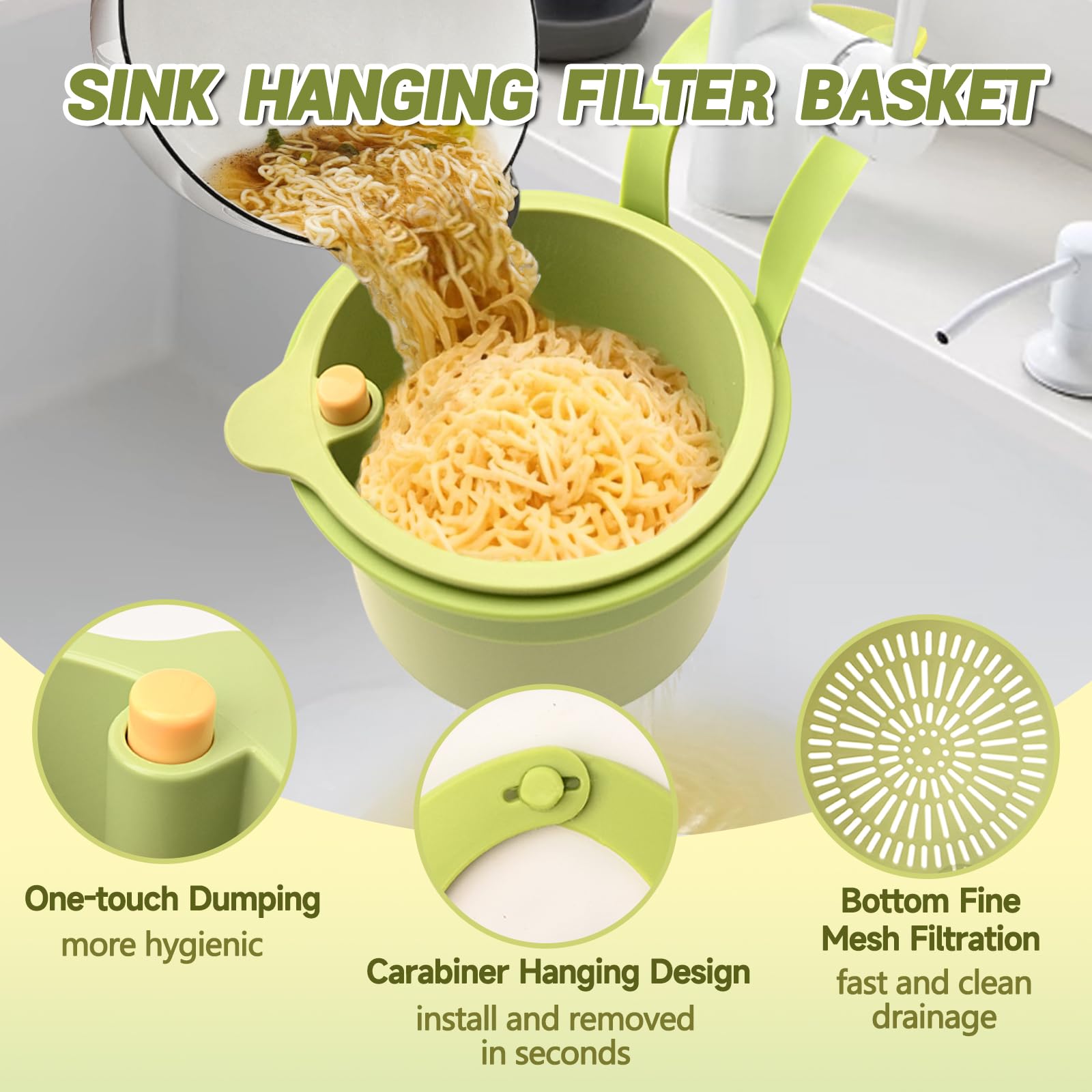 Il a une résistance à la corrosion et à l'usure, assurant la sécurité et les performances à long terme dans tout environnement de cuisine moderne. Panier À Linge Passoire De Cuisine Multifonction Passoire À Légumes Ce filtre d'évier de cuisine est parfait pour le nettoyage rapide et le remplacement de pièces, avec une conception snap-on adaptée à la plupart des éviers et des robinets standard. Accessoire évier Multifonction Audasi Passoire Évier Suspendue,Cuisine En Plastique Suspendue Panier Accessoire évier Pratique Nettoyage Rapide La structure de fond amovible permet une installation en 3 secondes et est facile à entretenir. Cet évier porte-éponge est non seulement adapté au drainage des aliments, mais sert également de solution de stockage pratique pour les ustensiles de cuisine tels que les éponges, les brosses et les ustensiles. Jardiniere Balcon Jardinière Suspendue Avec Drainant Plug Rond En... 【Conception multifonctionnelle】cet évier de porte-éponge est non seulement adapté au drainage des aliments, mais sert également de solution de stockage pratique pour les ustensiles de cuisine tels que les éponges, les brosses et les ustensiles. Cela rend le nettoyage après la cuisson rapide et simple. Passoire évier en plastique 【Vidage facile des résidus】Le robinet de plateau de filtre fin du panier de drainage accroché au robinet peut filtrer efficacement les petites particules de résidus alimentaires et de débris, assurant que l'évier est propre et sans entrave. Spécification Nom: robinet de bac de filtre d'évier réglable Matériel : Plastique Couleur du produit: Green Quantités: 1pcs 【Facile à installer et nettoyer】La structure de fond amovible permet une installation de 3 secondes et une maintenance facile. Très adapté pour maintenir l'hygiène de la cuisine et l'hygiène des mains pendant la cuisson ou le lavage. 【Matériel durable】ce panier d'évier de cuisine est fabriqué en plastique ABS haute résistance et sans danger alimentaire, qui est durable et durable.